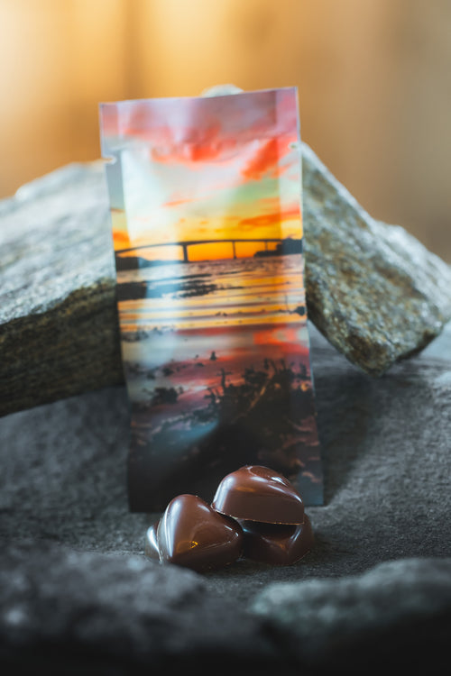 Sjokoladen fra Sjokoladebrygga blir utviklet og laget på Dønna på Helgeland, i et lite sjokoladeverksted tett på havet og naturen.